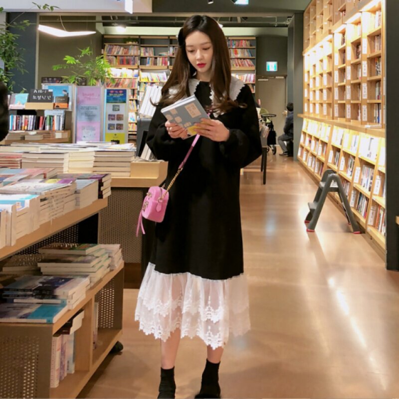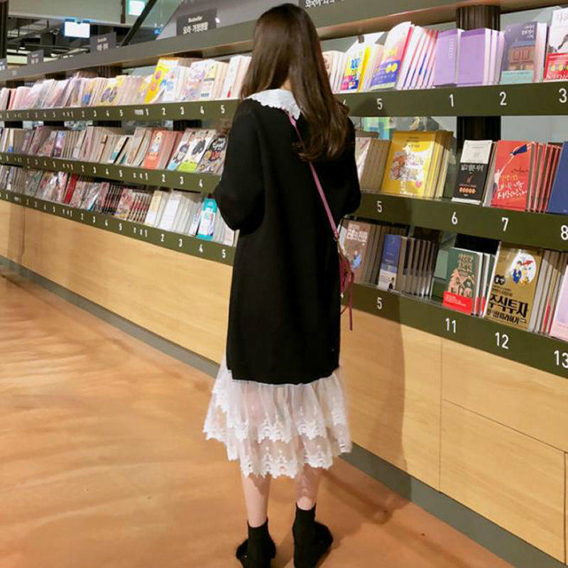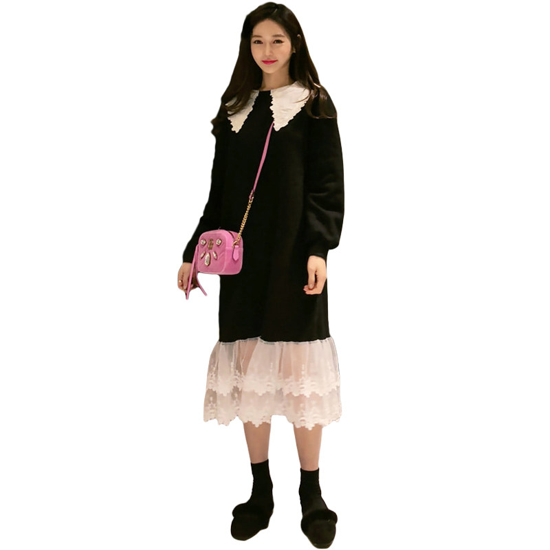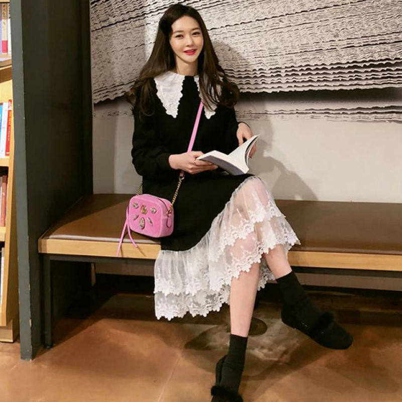 Autumn Clothing New Korean Version of Pregnancy Woman Dress With Loose Color Dress Fat MM Splicing Lace Dress Dress Foreign Pie Long Skirt