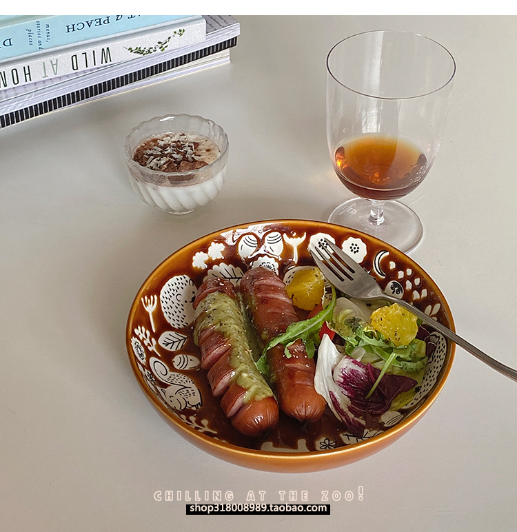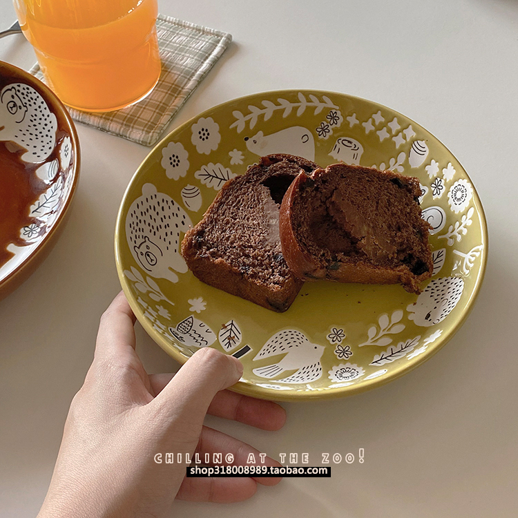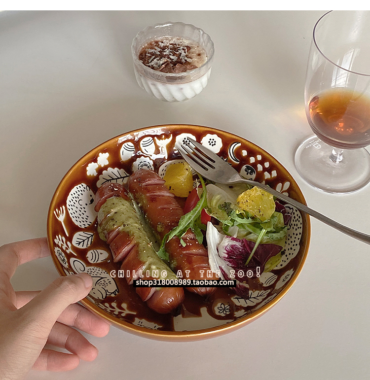 Lost blue Japanese tableware soup plate Animal Forest ceramic household dish breakfast plate household relief plate