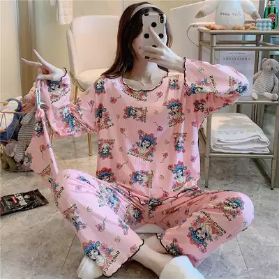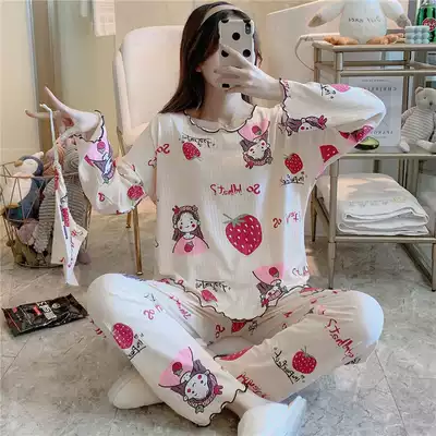 Pajamas female spring autumn cotton long sleeve ins Korean cartoon cute autumn winter thin home clothes two piece set summer