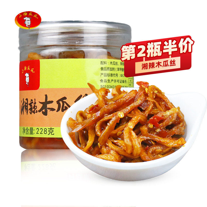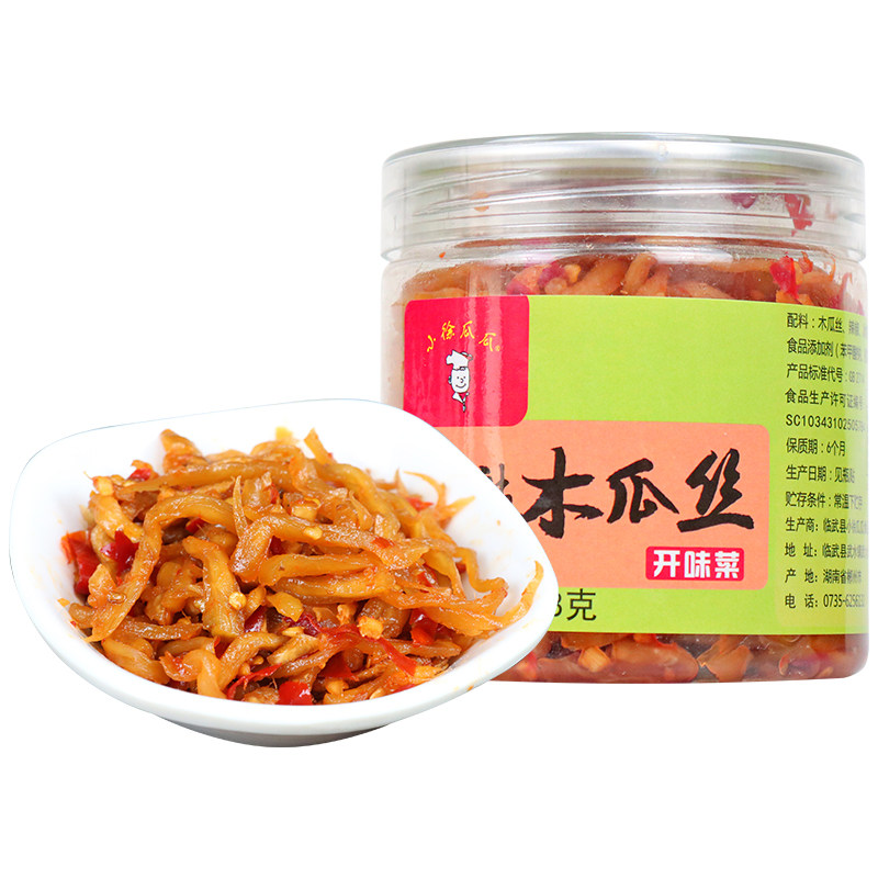 Xiaoxu Guagua Papaya silk refreshing dishes Hunan specialty pickles Spicy bottled rice pickles crispy and refreshing noodles