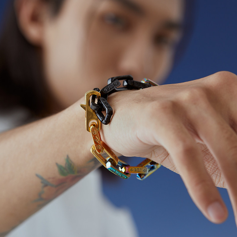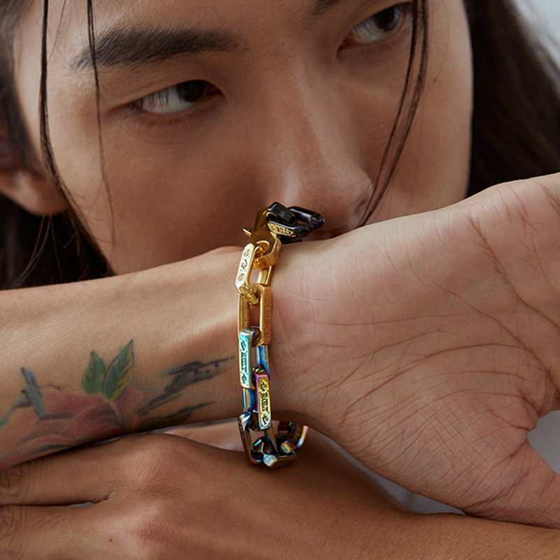 ROADLATIVE original design brand national trend accessories seven color gradient of European and American rock and roll titanium steel men's hands-on