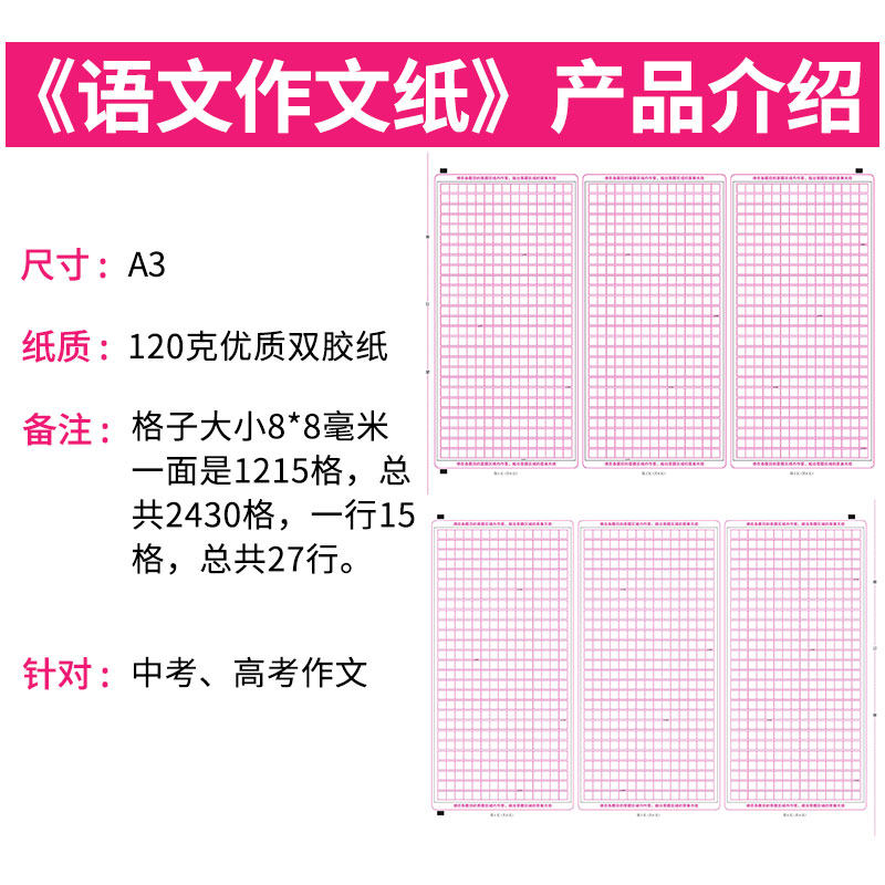 The Chinese Question Card for the High School Examination and Management Co., Ltd. Double-sided national volume 1 volume 2 volume 3 roll square paper paper paper students use the college examination for 400 grids