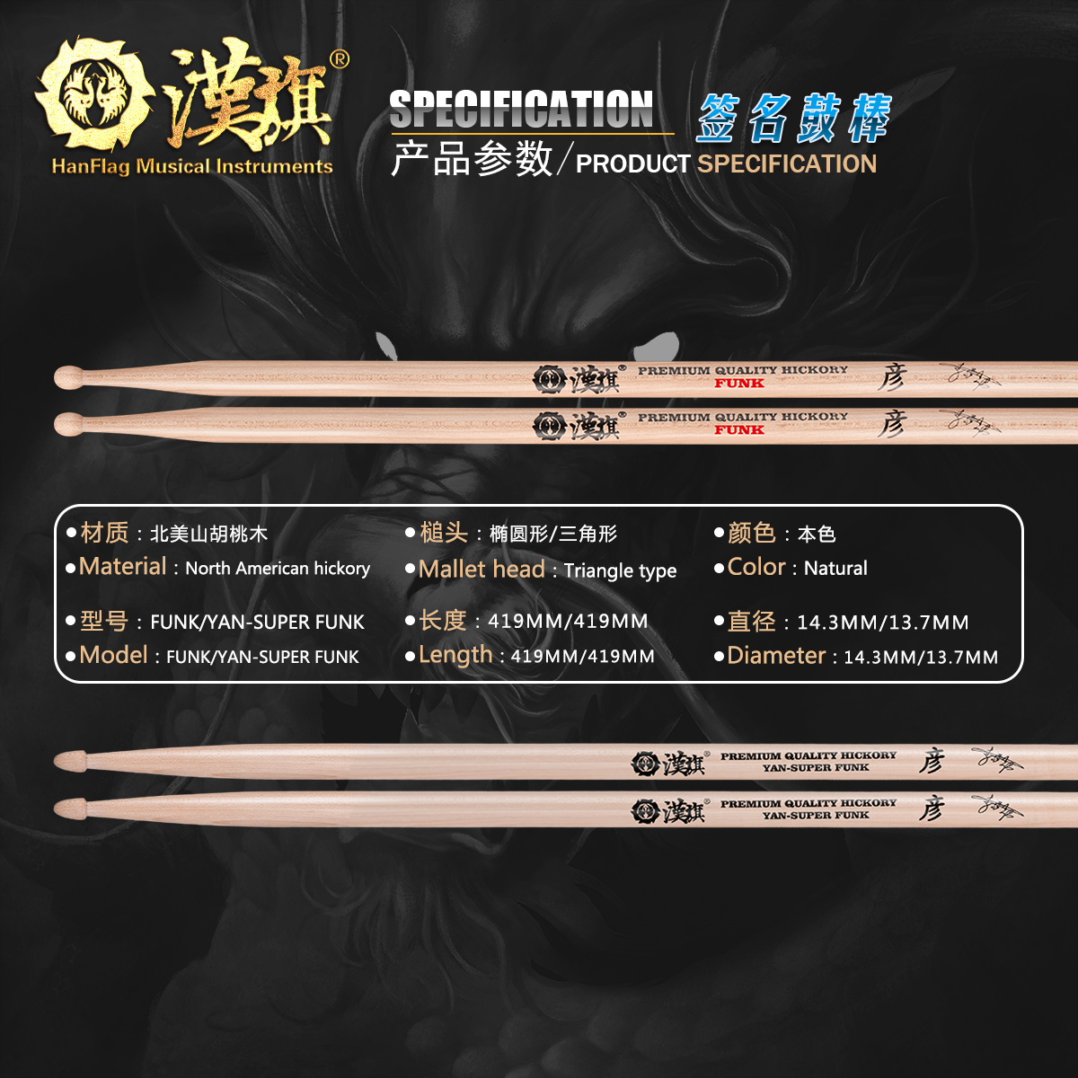 Hanqi drumstick Li Yanchao's signature frame sub-drum drumstick FUNK YAN-SUPER FUNK