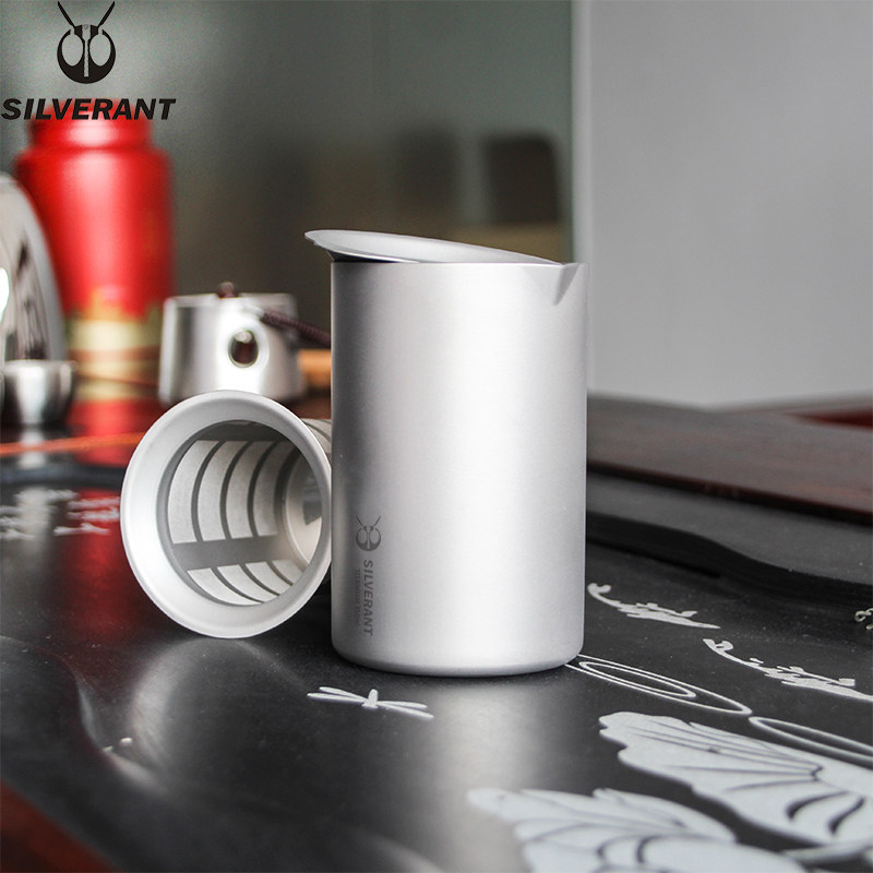 Silver ant pure titanium double layer anti-scalding outdoor travel tea maker portable titanium alloy tea set kung fu teapot titanium quick passenger cup