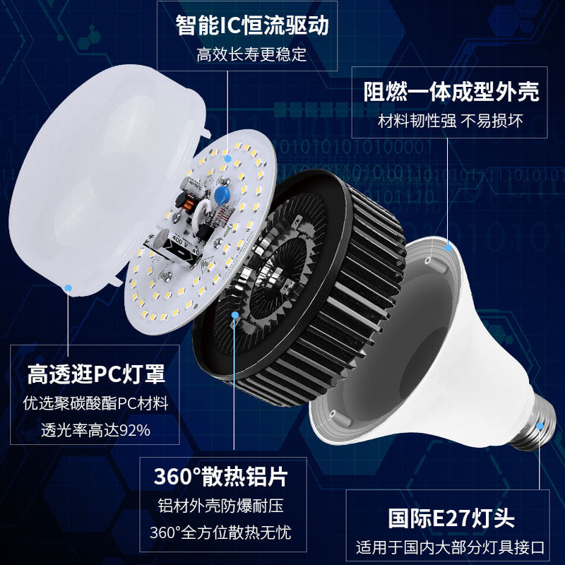 High-power led bulb e27 screw energy-saving lamp home super bright workshop site factory lighting 100 watts 150 watts