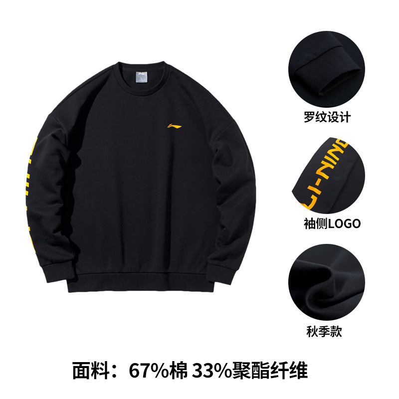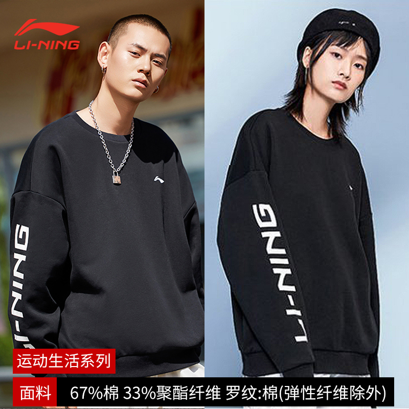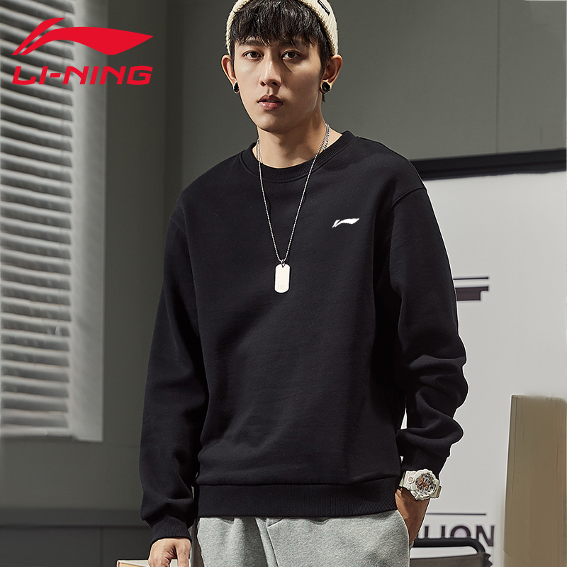 China Li Ning sweater men's 2021 autumn and winter new sports fashion suit breathable round neck plus fleece pullover