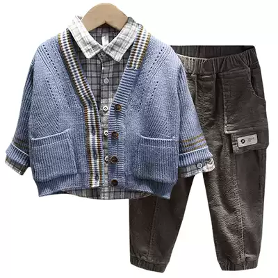 Boys' spring suit children's sweater sweater three-piece handsome 2021 New Baby foreign style Spring and Autumn Tide clothes