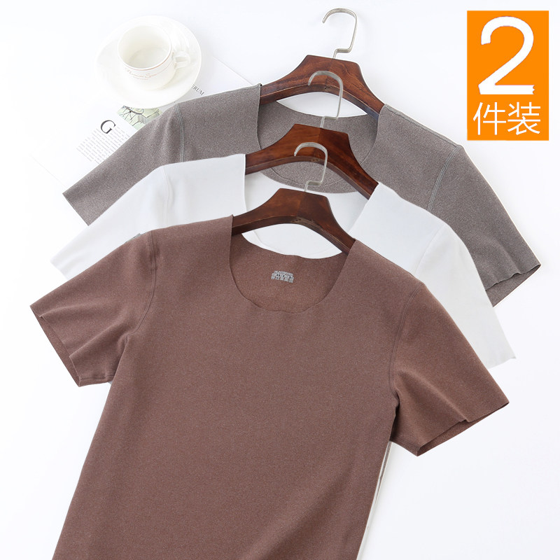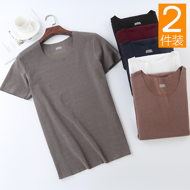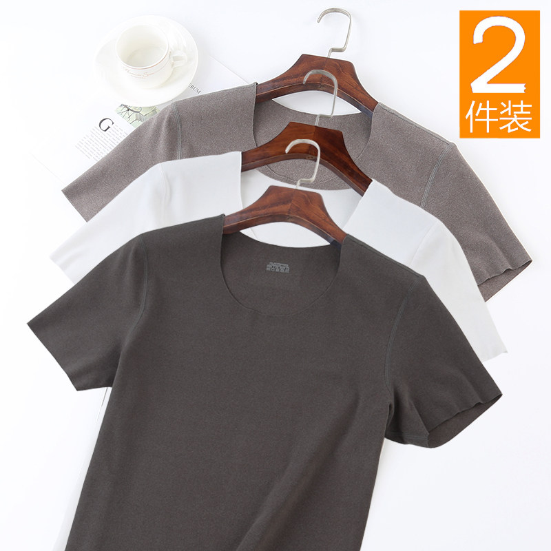 2 pieces of German velvet seamless thermal top men's short-sleeved velvet thickened autumn and winter half-sleeved T-shirt heating underwear bottoming shirt