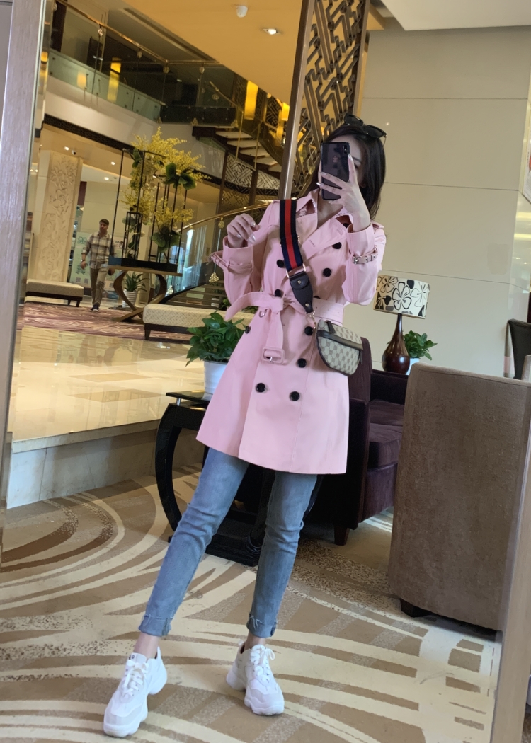 Love beauty alone and hellip; hellip; ice powder! 2021 temperament pink windshield woman medium-length version of the small English wind