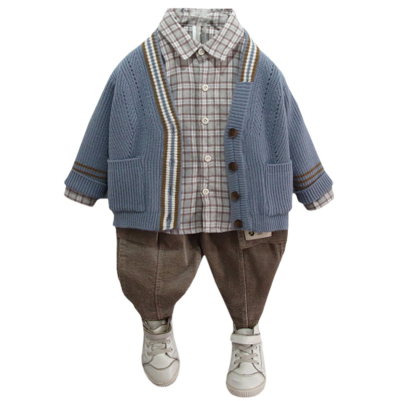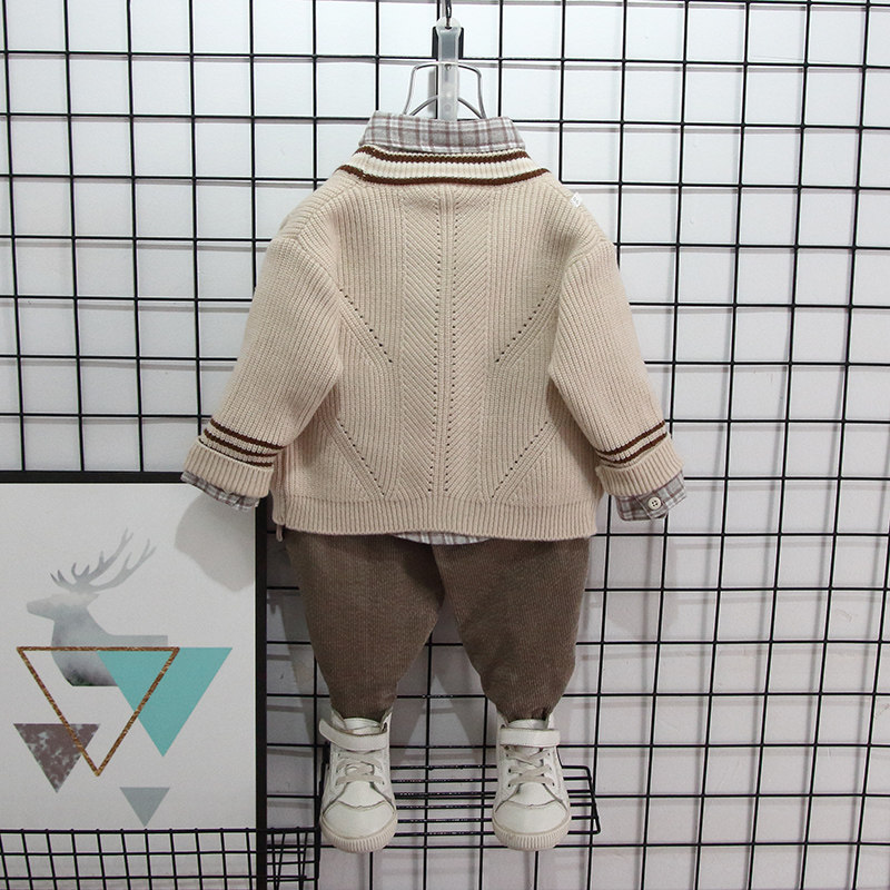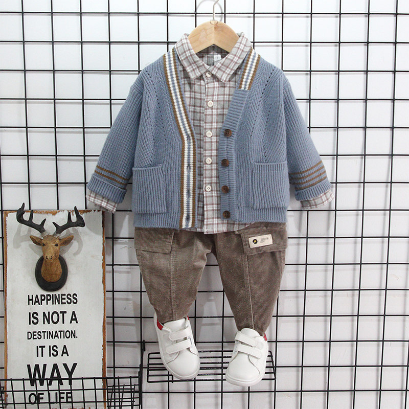 Men's baby sweater suit children's foreign school spring 2021 spring and autumn new boys sweater plaid three-piece set tide