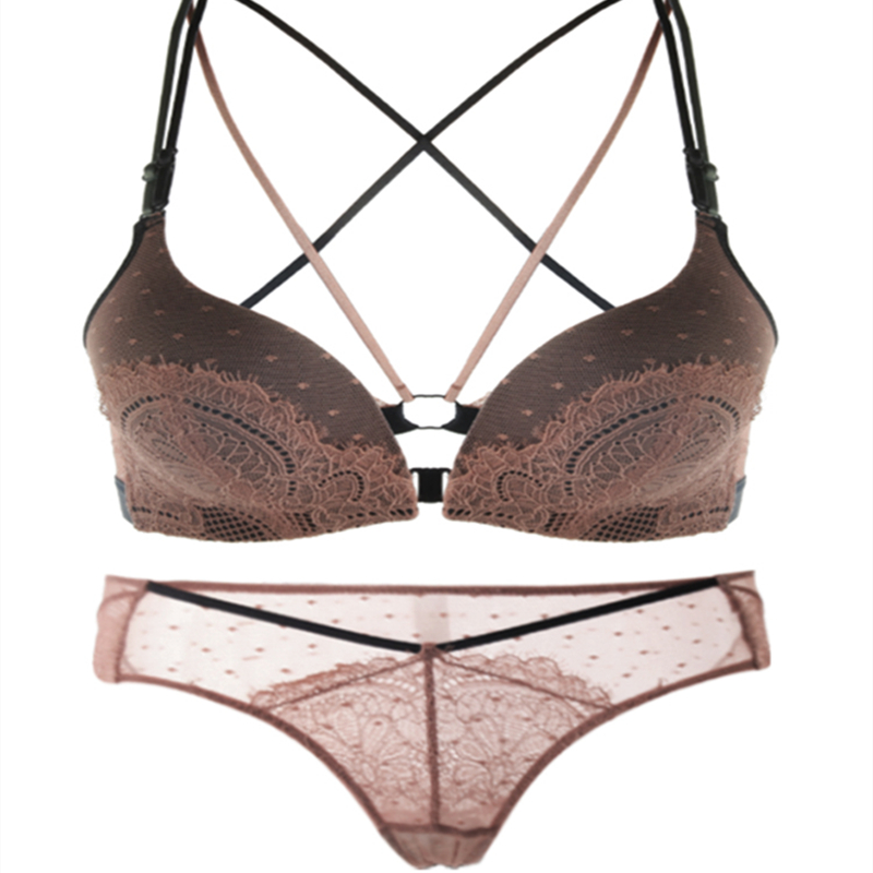 Japanese beauty back underwear women's front buckle no steel ring adjustment breast type close breast small chest gather bra set