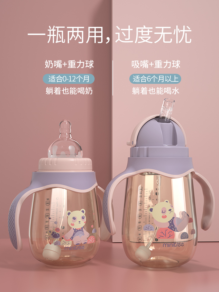 minitree bottle big baby fall resistant newborn baby straw 1 year old over 2 years old 3 years old ppsu brand 6 months