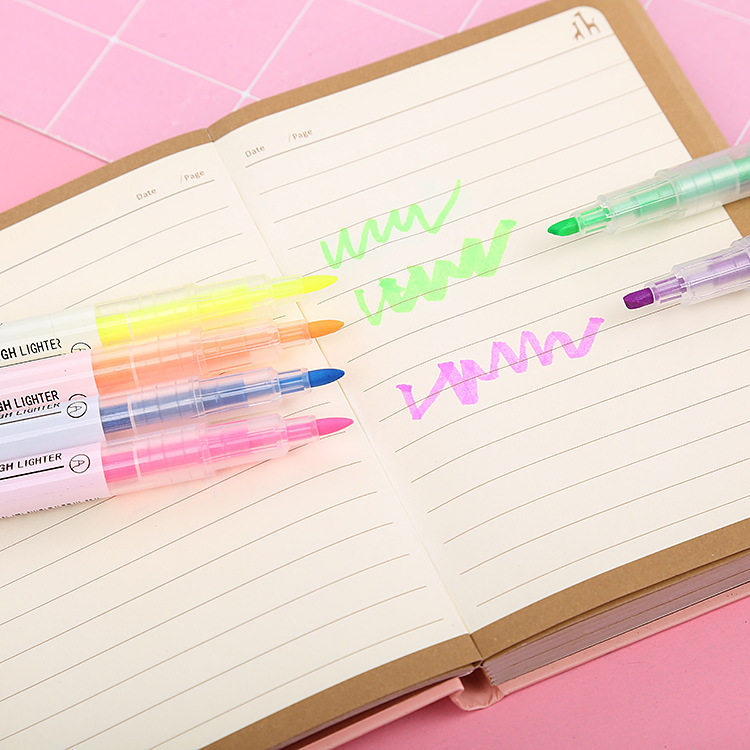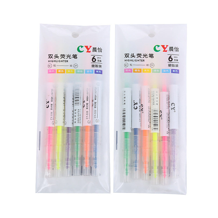 Color double-headed highlighter 6-color mark key line marker pen student graffiti hand account pen oblique head watercolor pen