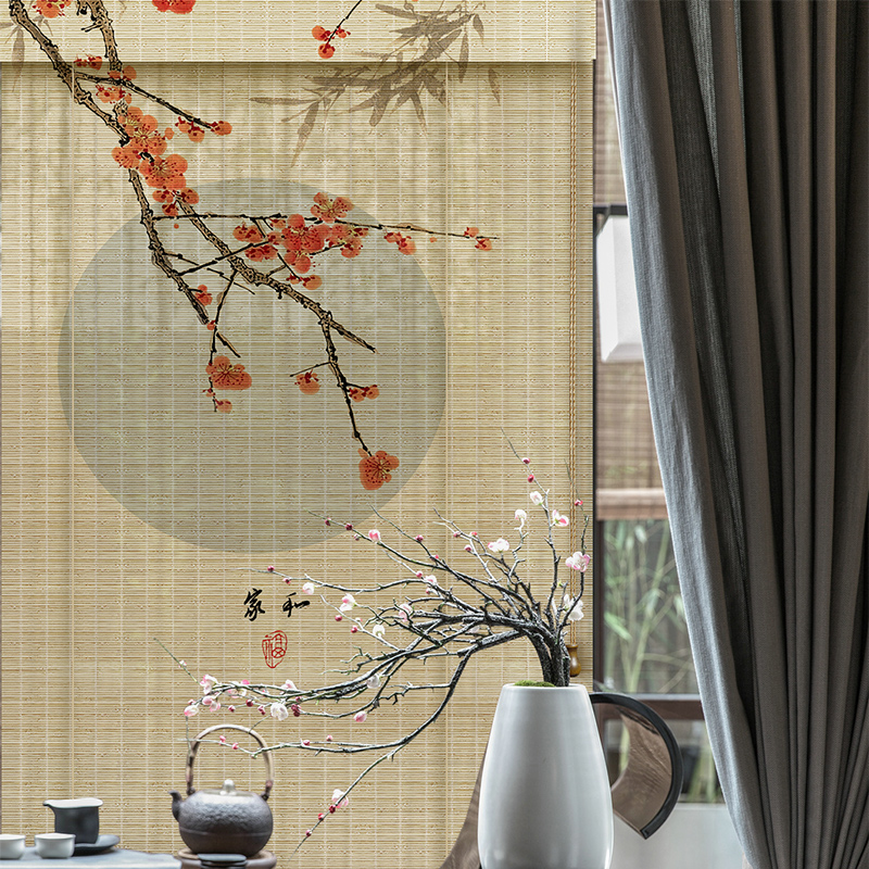Kaimei Lon Printed Bamboo Curtain Roller Blind Curtain Partition Window Decoration Home With Balcony Shading Lifting Door Curtain China Wind