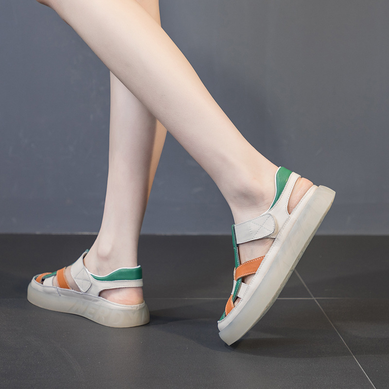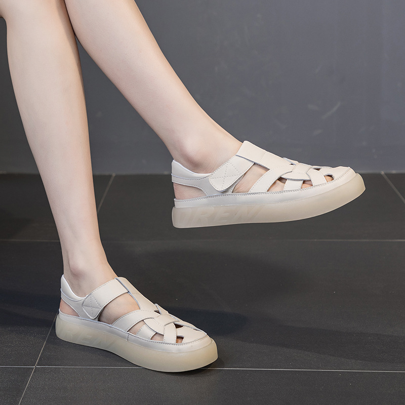 First layer cowhide cool xie women's half drag all-match leisure sports xie soft bottom pregnant women beach xie2022 new Korean