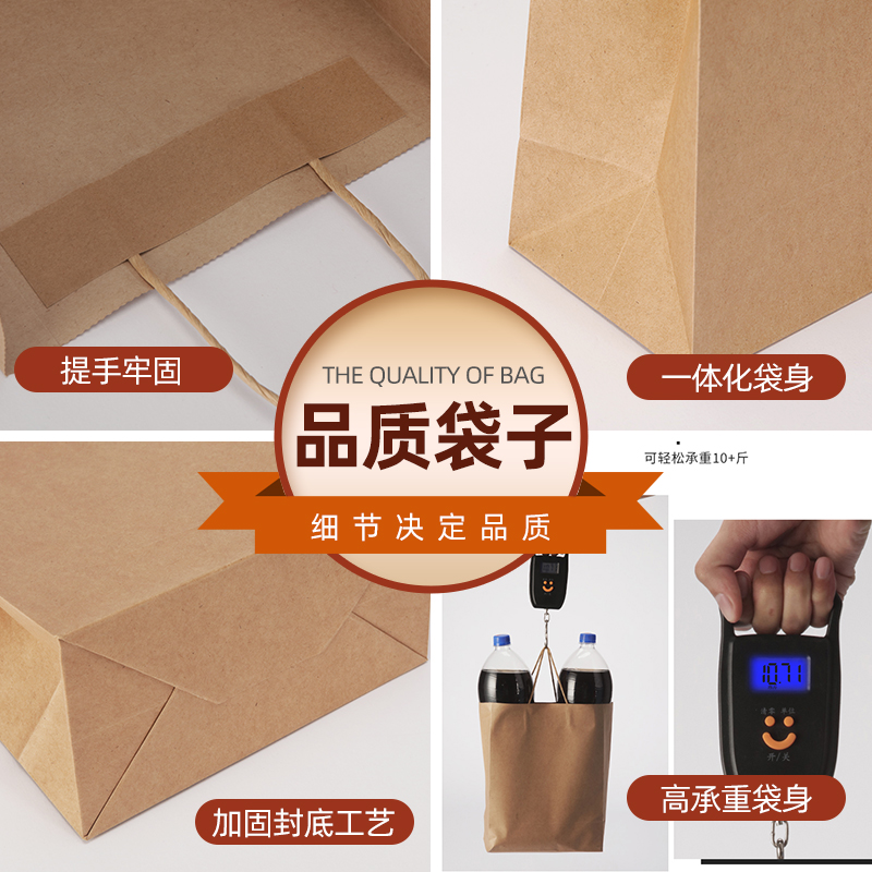 Kraft paper bag tote bag custom milk tea delivery packaging bag clothing store bag packaging bag small gift bag logo