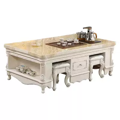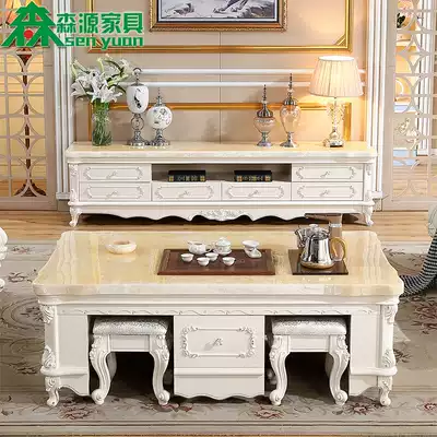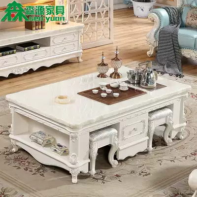 European-style marble solid wood multifunctional kung fu coffee table white tea table TV cabinet combination simple small apartment