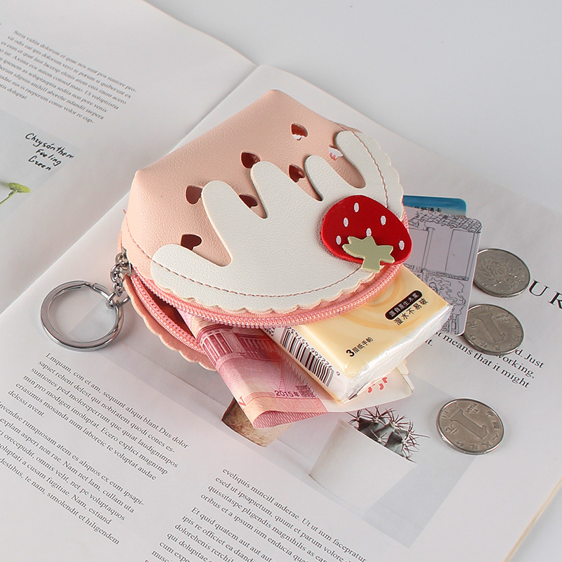 Strawberry Ice Cream Cute Mini Zero Wallet Small Coin Zero Money Small Bag Shake Bracelet Student Wallet Woman Short