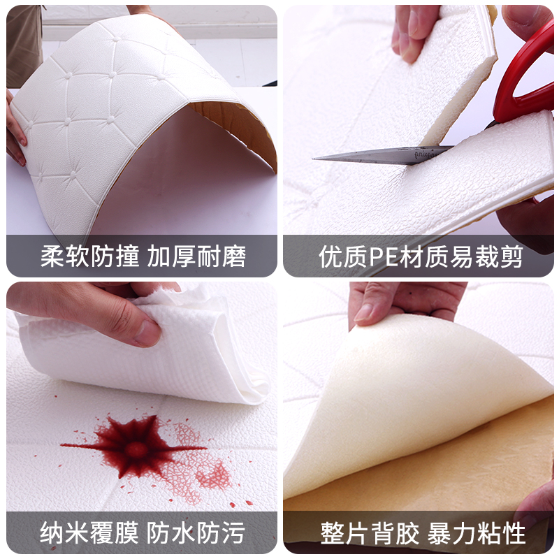 Children's anti-collision foam wallpaper Self-adhesive bed head stickers Imitation soft bag anti-collision wall stickers Decorative 3d three-dimensional wall stickers Tatami