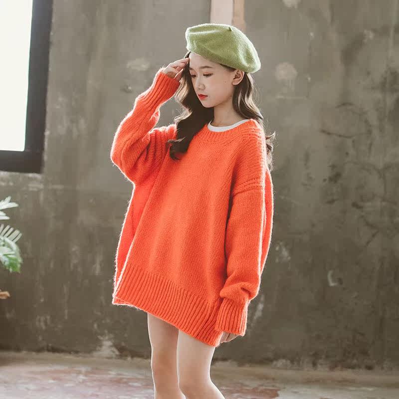 Girls sweater pullover 2022 autumn and winter new Korean version of the big children's fashionable lazy sweater loose outerwear tide