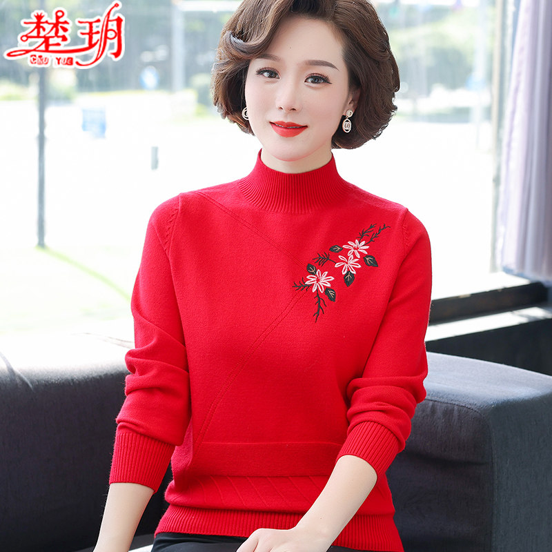 Middle aged women's autumn dress Long sleeves Nets 40-year-old 50 middle-aged Mom clothes autumn and winter foreign pie shorts shorts