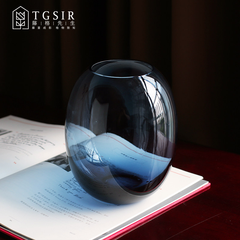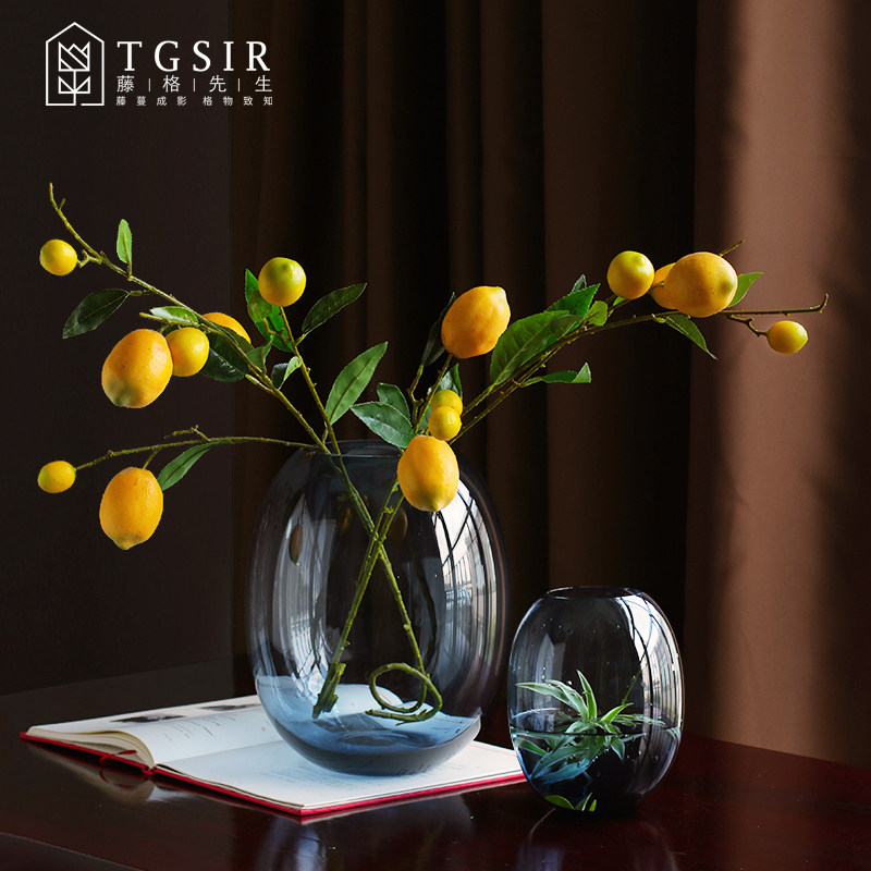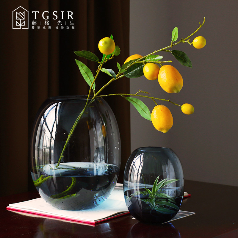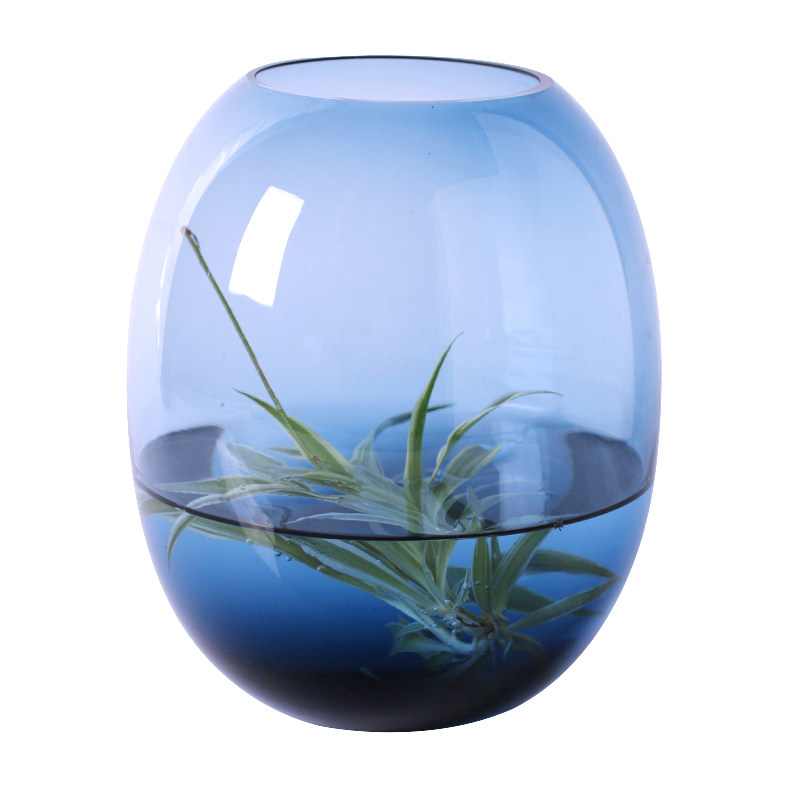 Nordic Blue Glass Vases Modern Minimalist Creativity Transparency Big Belly Water Bacon Plant Flower Arrangement Decorative Hem