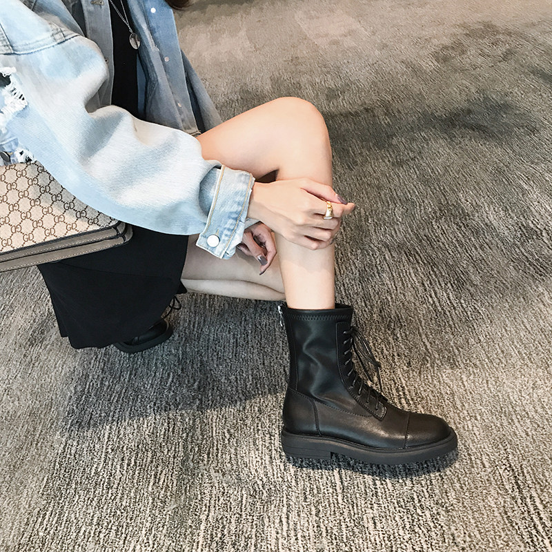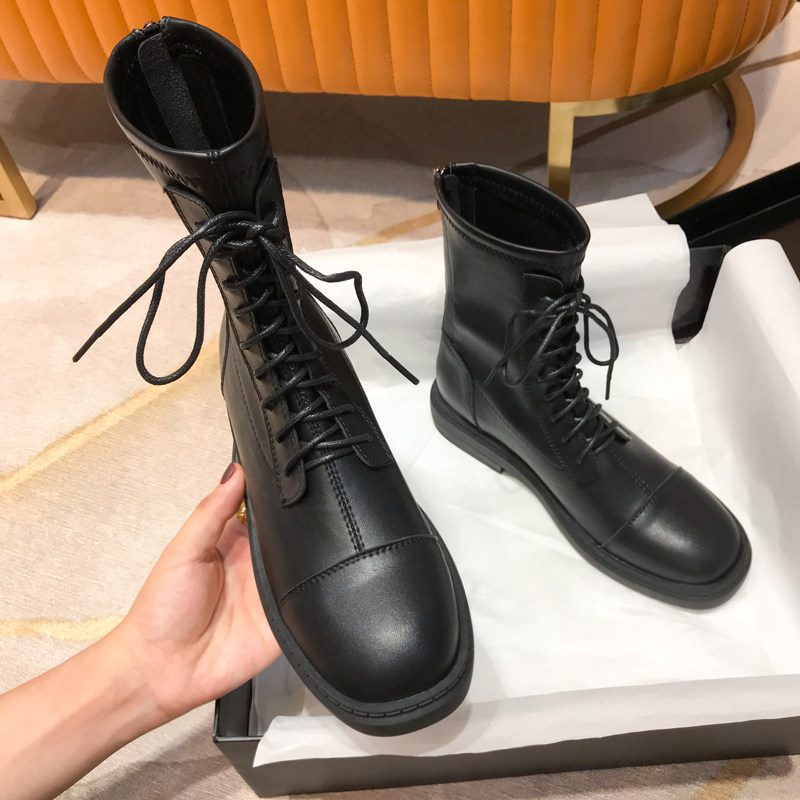 Flat bottom Martin boots female spring autumn single boots 2021 new lacing Inn wind short cylinder handsome short boot retro-ins tide