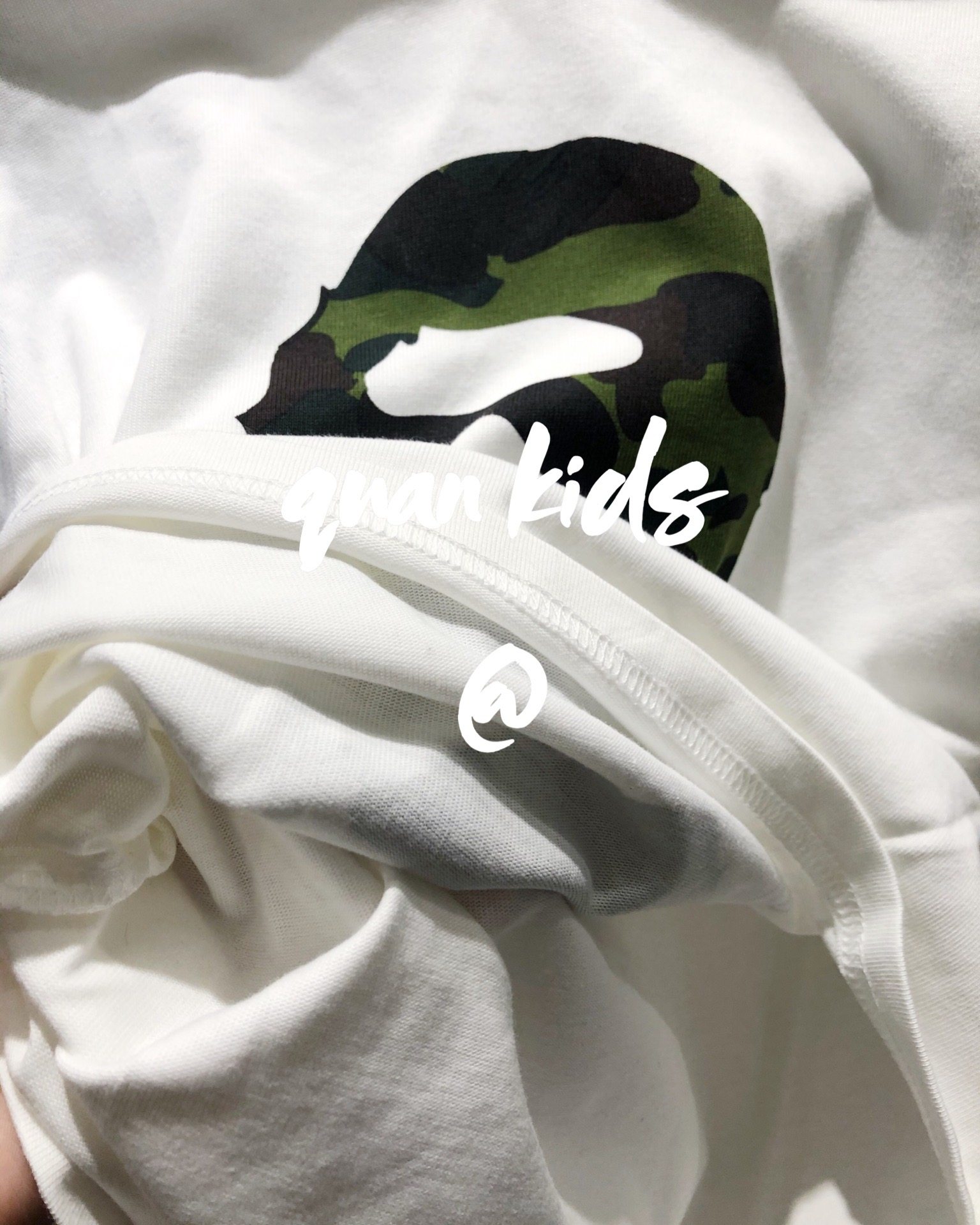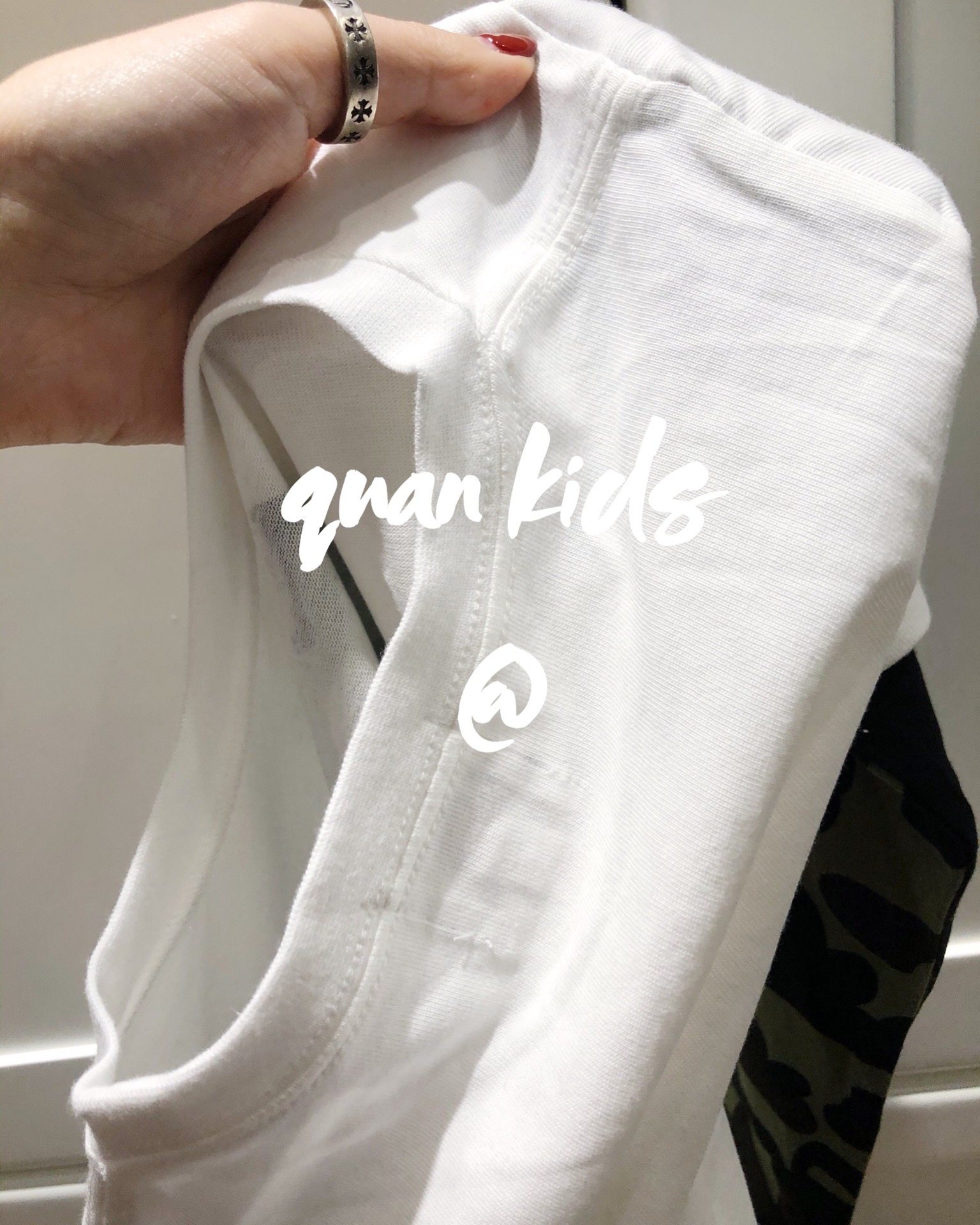QUANKIDS Japanese tide brand children's camouflage sleeve fake two-piece T-shirt boy baby cotton printing round neck
