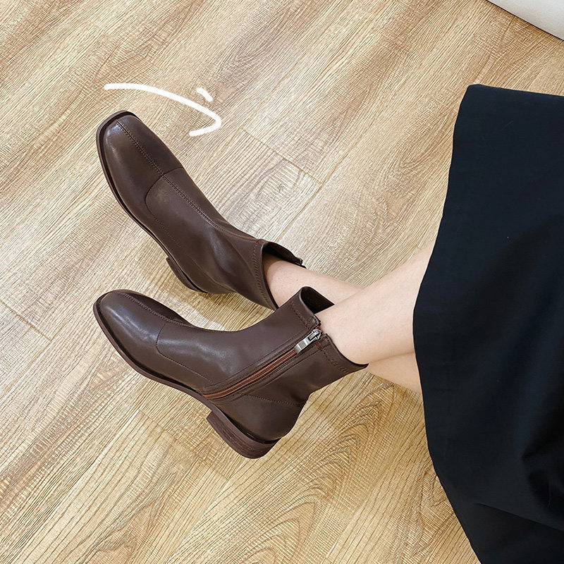 2021 Autumn Winter New White Flat Heel Short Boots Slim Boots Genuine Leather Boots Nude Boots 100 Hitch Head Martin Boots Woman