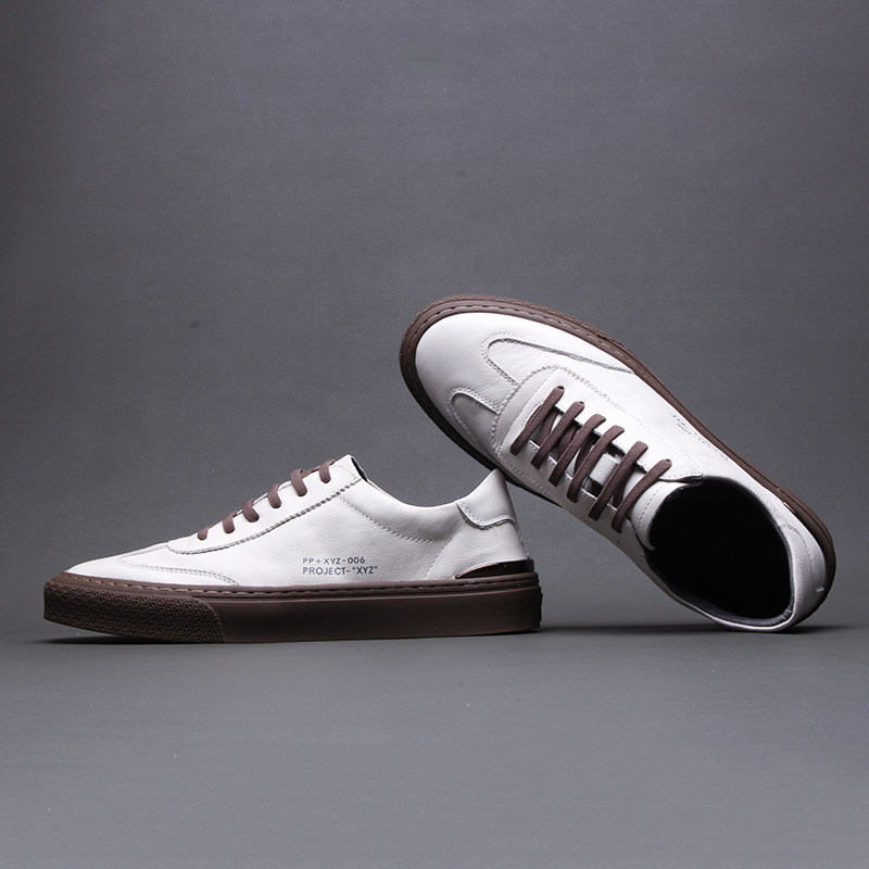 Men's shoes 2021 Spring new casual board shoes genuine leather breathable 100 tapers small white shoes men's Korean version Trend leather shoes