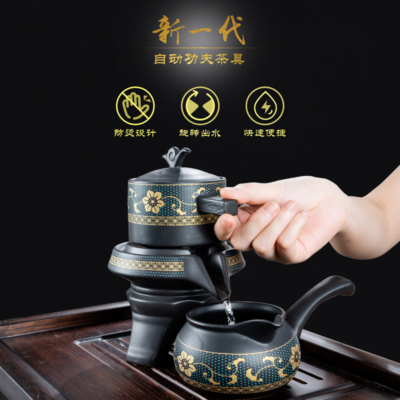 Kung Fu tea cup set household ceramic tea set Small set stone mill teapot lazy semi-automatic tea maker tea tray