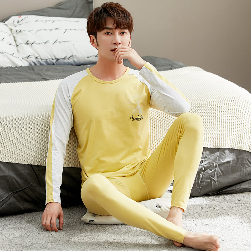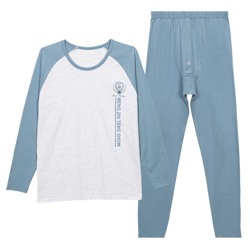 Cotton men's autumn clothing sanitary pants set youth pants cotton sweater thin cotton heating clothing sanitary pants