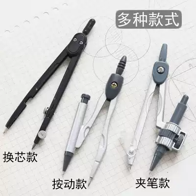 Compass student set Primary school student morning light stationery test compass test special ruler set College entrance examination Practical multi-function clip pen type Triangle ruler Metal stainless steel drawing