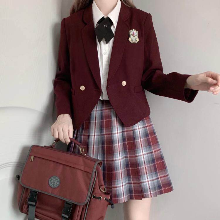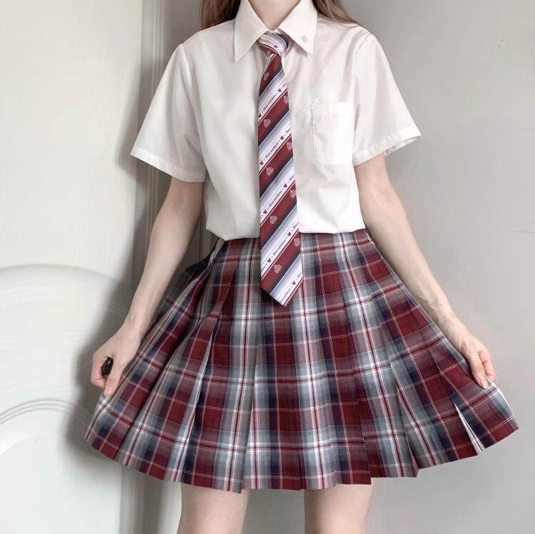 Kasukabe (burning city) spot original excellent grid skirt jk uniform skirt orthodox female short pleated skirt red student