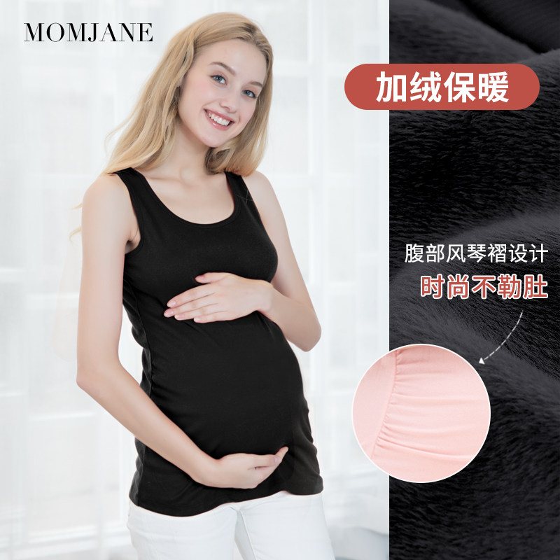 Pregnant women's vest warm autumn and winter days pure cotton velvet plus velvet condole belt go out to base large size pregnant women