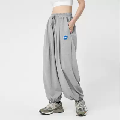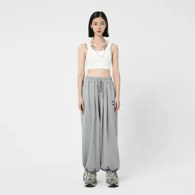(WUT official store)2020AW basic LOGO light gray loose wide-leg guard pants hip-hop drawstring pants