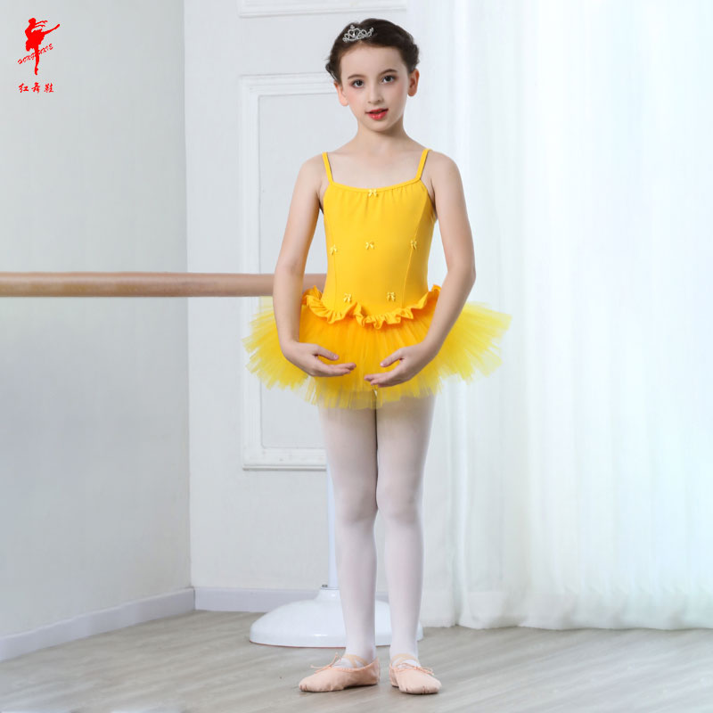 Red dance shoes children's bodysuit suspenders lace gauze skirt gym suit ballet skirt one-piece short-sleeved verification test skirt 61131
