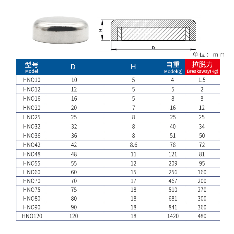 Base diameter 10mm pull-off force 1 5Kg base diameter 12mm pull-off force 2Kg base diameter 16mm pull-off force 8Kg base diameter 20mm pull off force 12Kg