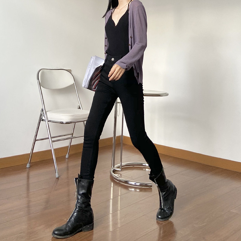 Small Black Pants Children High Waist Display Slim Smoke Tubes Pants Elastic Body Pencil Pants Slim Fit Long Pants Spring Autumn Beat Bottom Magic Pants