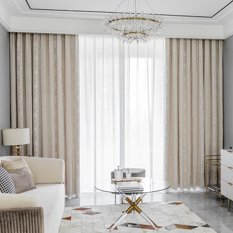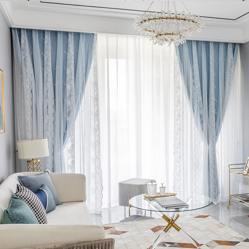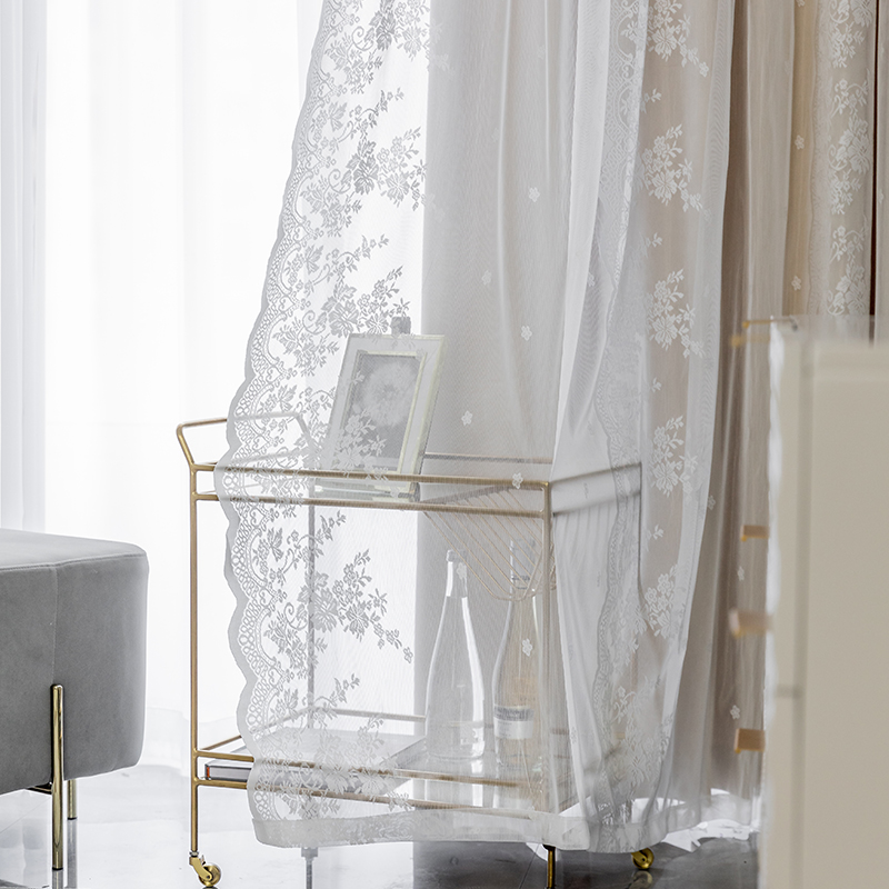 Modern minimalist light and luxurious Korean style lace princess wind shading window curtain girl bedroom floating window living-room upscale atmosphere