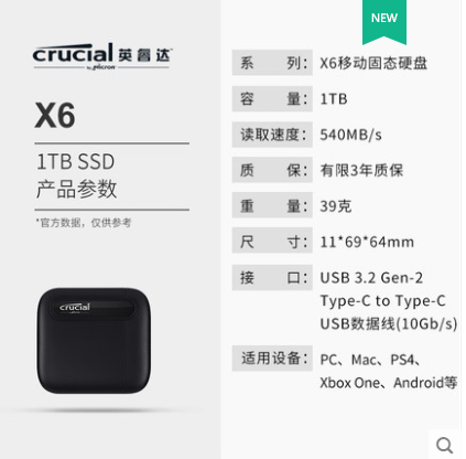 CRUCIAL Spotlight X6 PSSD 800M 1T2T Mobile High Speed Solid State Drive Typerc Compatible USB