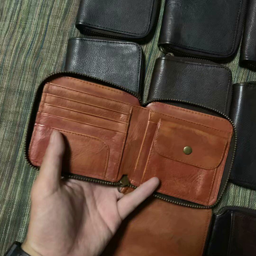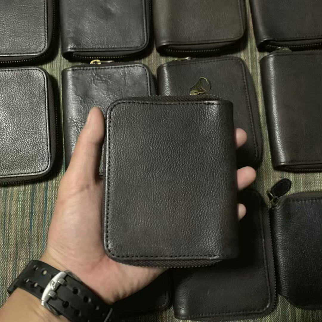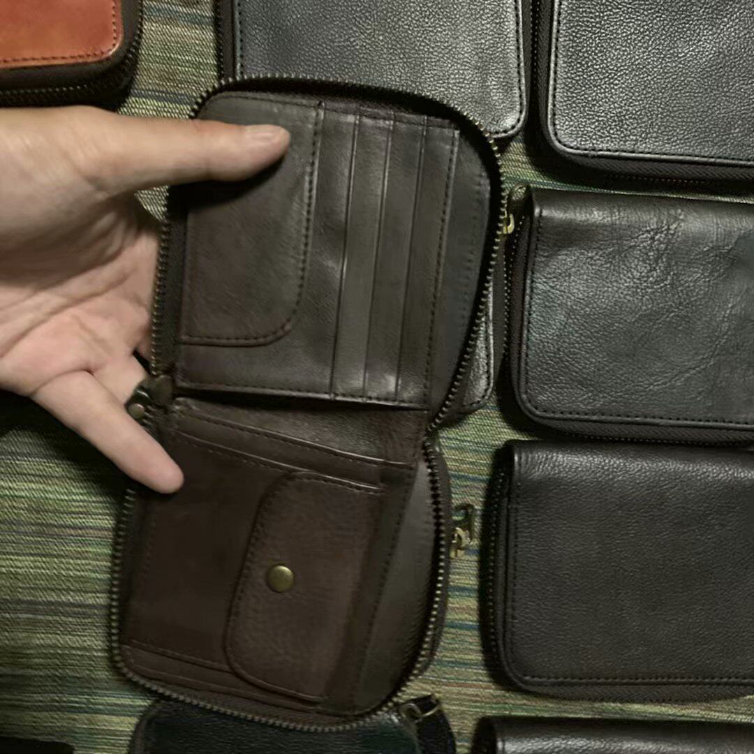 There is connotation Small and convenient Day single head layer cowhide YKK pull chain Men and women short clips