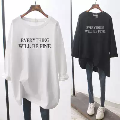 Long-sleeved T-shirt women's thin loose 2021 new autumn Korean version of the top, medium and long version of the casual inner clothes, spring and autumn