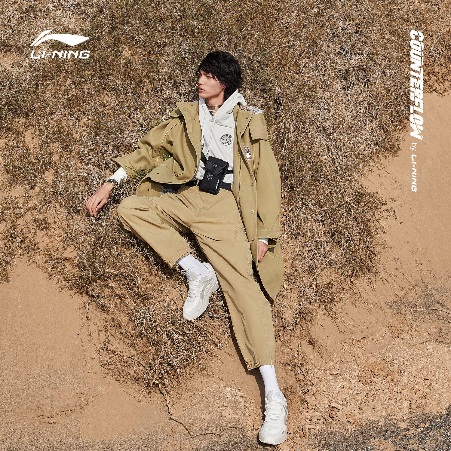 Li Ning CF traceable trench coat men's autumn and winter loose and versatile tops hit fashion casual men's long-sleeved men's sportswear