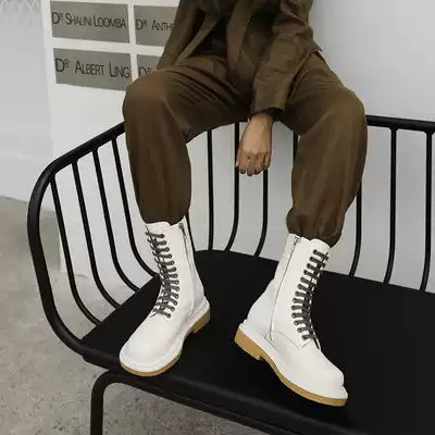 ALEXSARA handsome Chelsea thick-soled boots new leather English style women's tide ins lace-up Martin boots