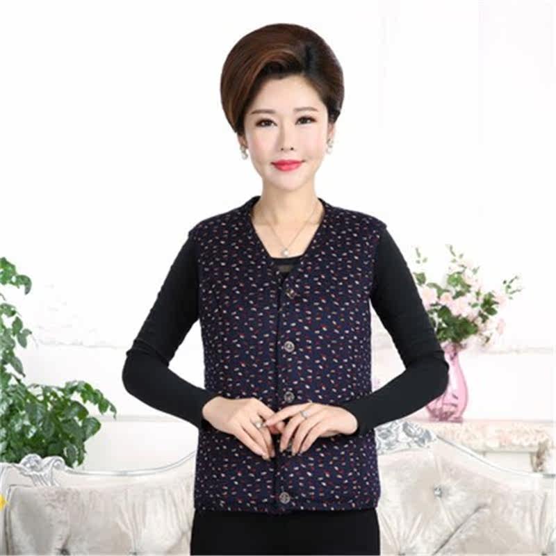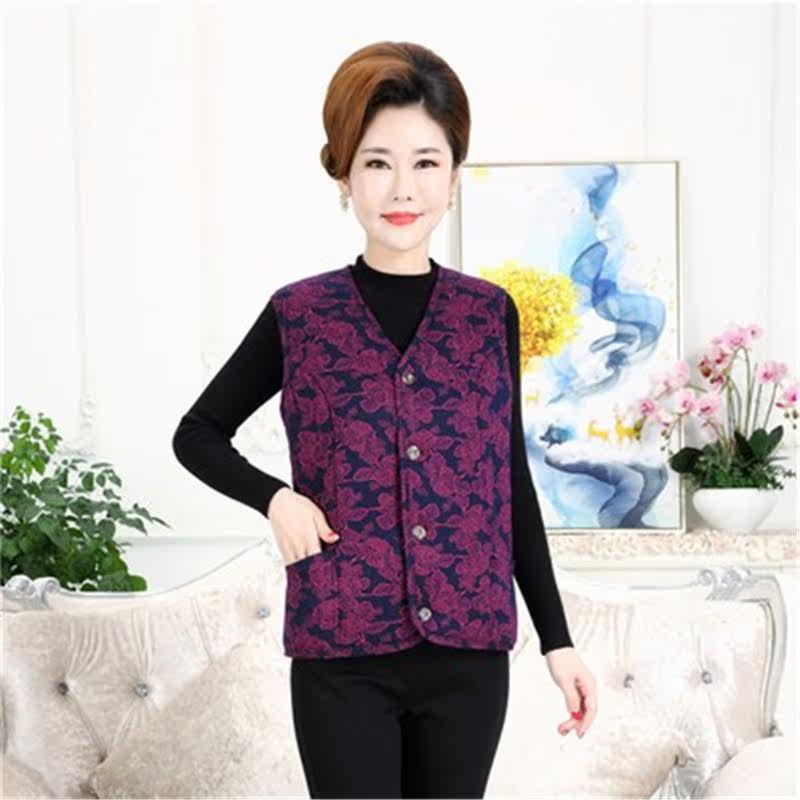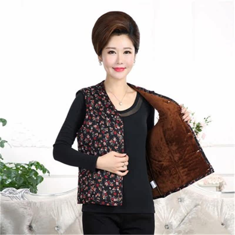 Middle-aged and elderly autumn clothes plus thin velvet vest women's sleeveless cotton loose mother vest vest without collar outside wearing a vest