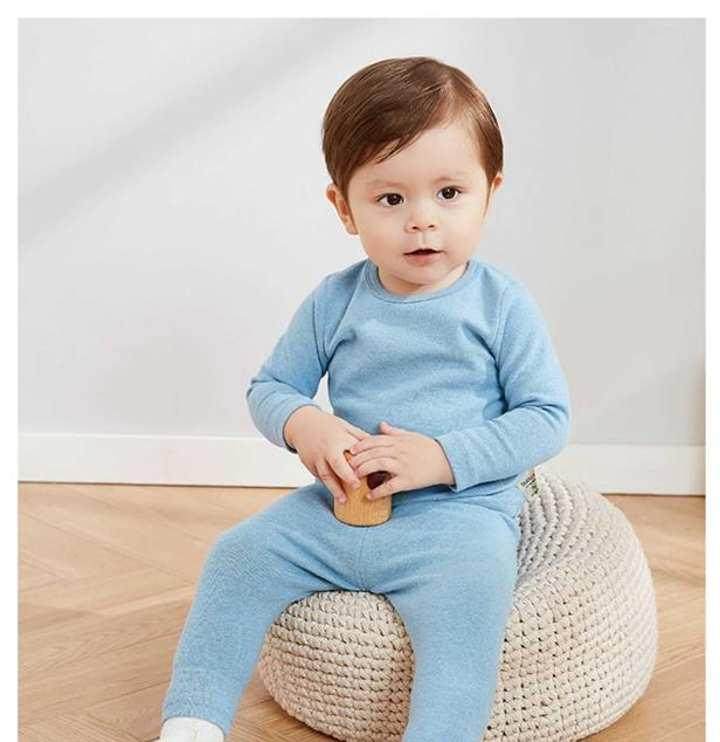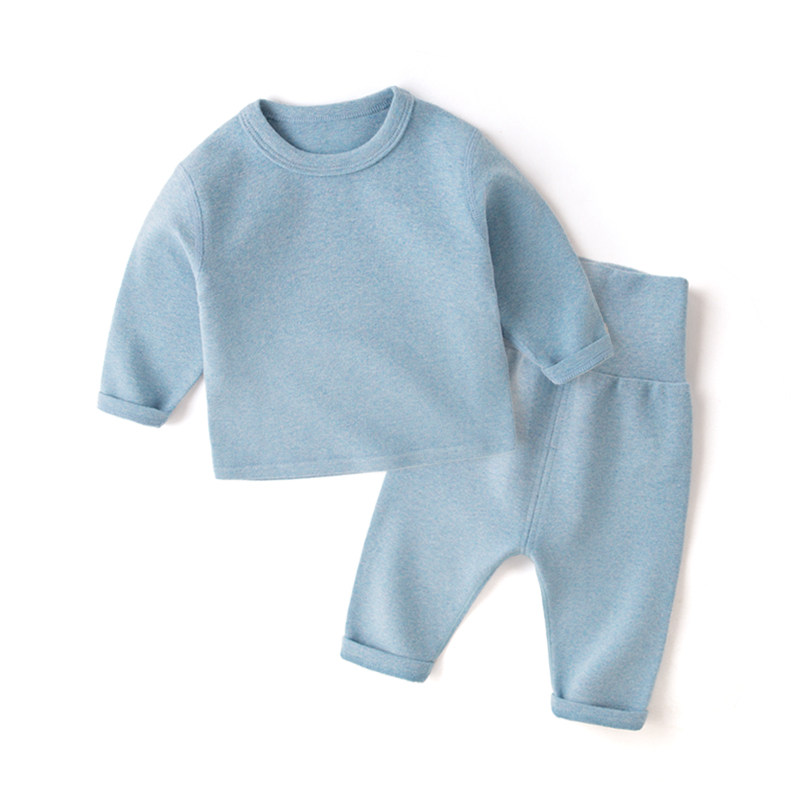 Baby autumn and winter high waist and warm and velvety sleeping clothes pure cotton baby protective belted pants Long sleeves male and female toddlers beating the bottom two sets