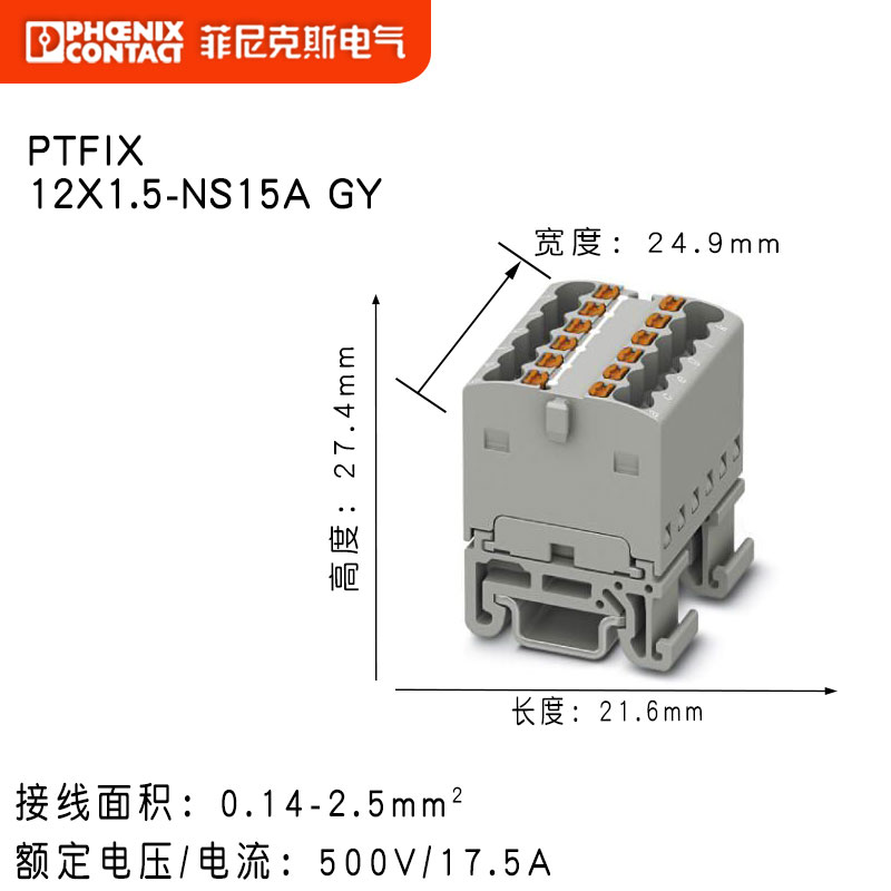 One in and more out Phoenix terminal block PTFIX 12X1 5-NS15A a pack of 20 pieces 3002914