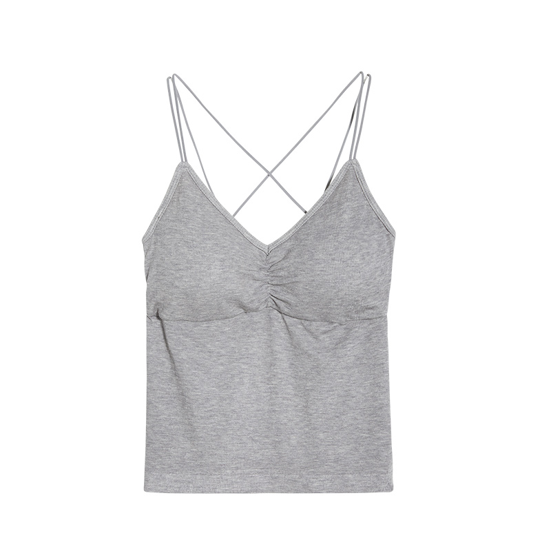 Cross with open umbilical cord chest cushion free of bra integrated harness cotton knit short vest sexy teenage girl beauty back bra