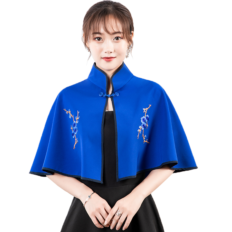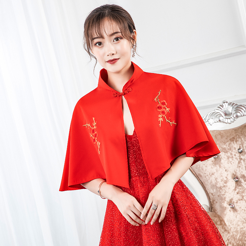 Bride wedding dress shawl with a cheongsam outside to host the show wedding retro stand collar cloak embroidery is thin and short
